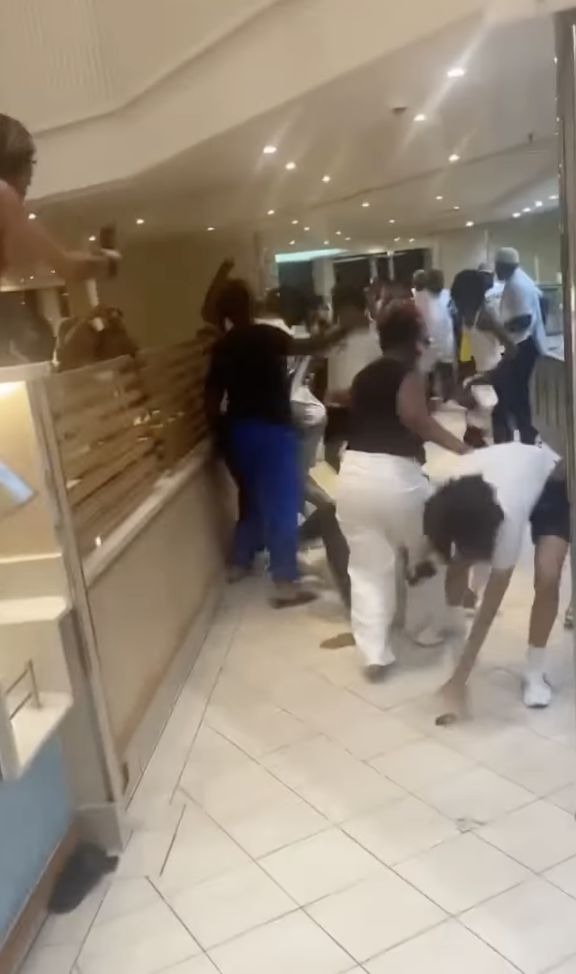 The viral video shows guests yelling, shoving, and trading punches, with shoes and cellphones flying through the air. At one point, a frustrated woman can be heard shouting, “Where the f— is security?” as a lone crew member attempted to break up the melee.