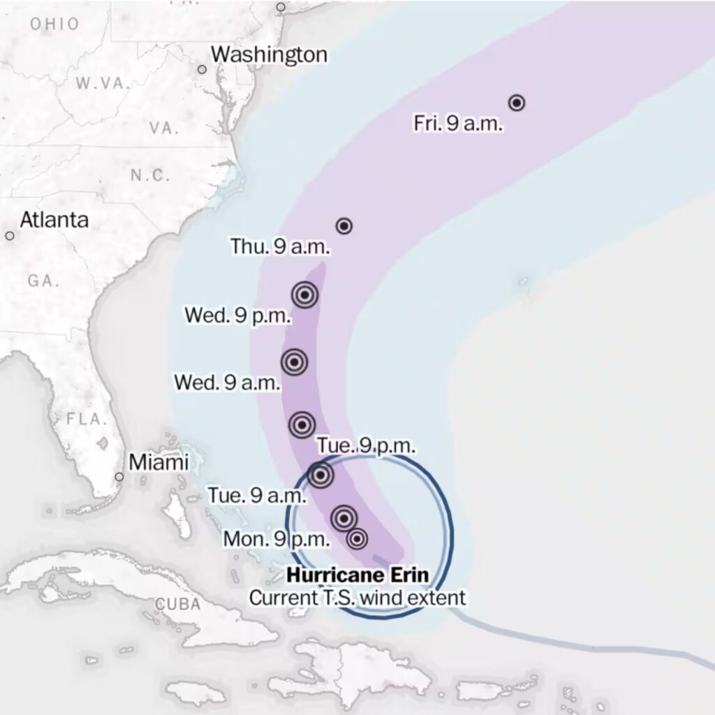 Erin’s development has been notable. Forming off the coast of Africa on August 11, the storm quickly intensified into a hurricane as it passed through the Caribbean by August 15.