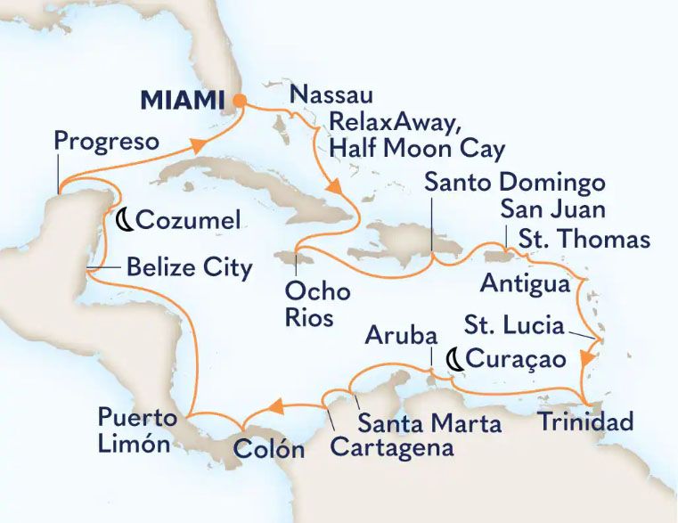 Roundtrip Cruise From Miami to 18 Beautiful Caribbean Ports