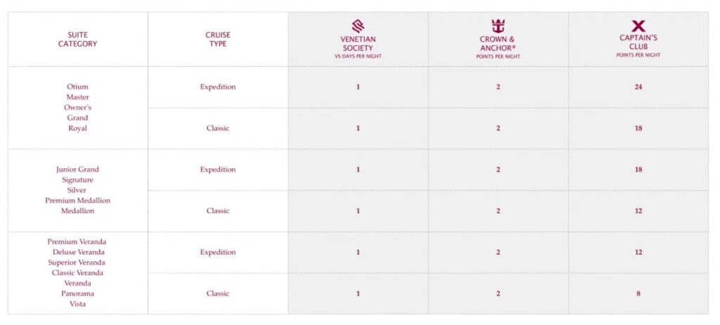 Because exchange rates differ, a solo balcony cruiser on a 7-night Royal Caribbean sailing could earn 14 Crown & Anchor points, or 42 Captain’s Club points if transferred to Celebrity — a significant boost for those chasing higher-tier perks.