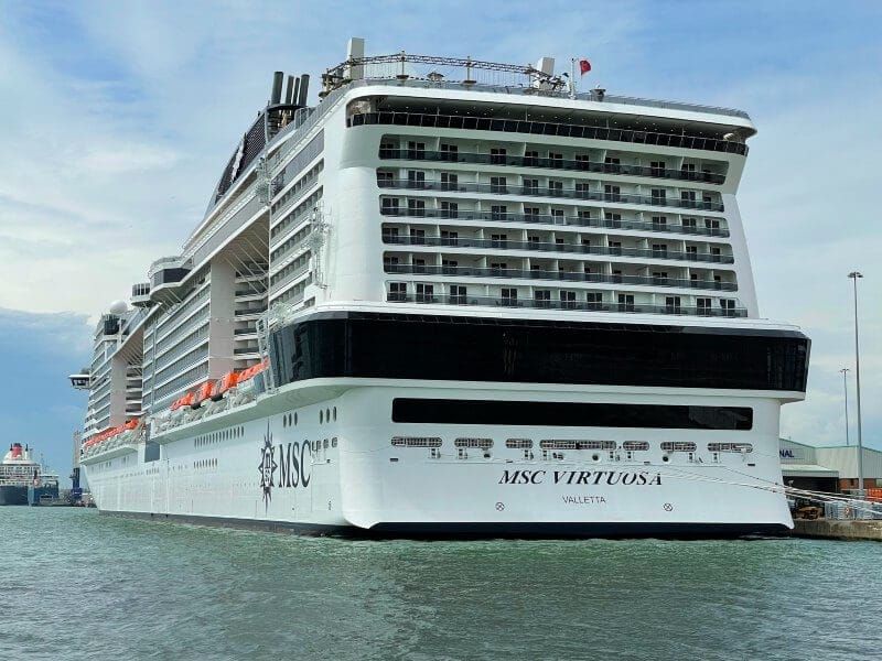 MSC Virtuosa is a 181,541-gross-ton ship with a maximum capacity of 6,334 passengers. She is part of MSC’s Meraviglia Plus class, currently the cruise line’s second-largest ship class, surpassed only by the newer World-class vessels.